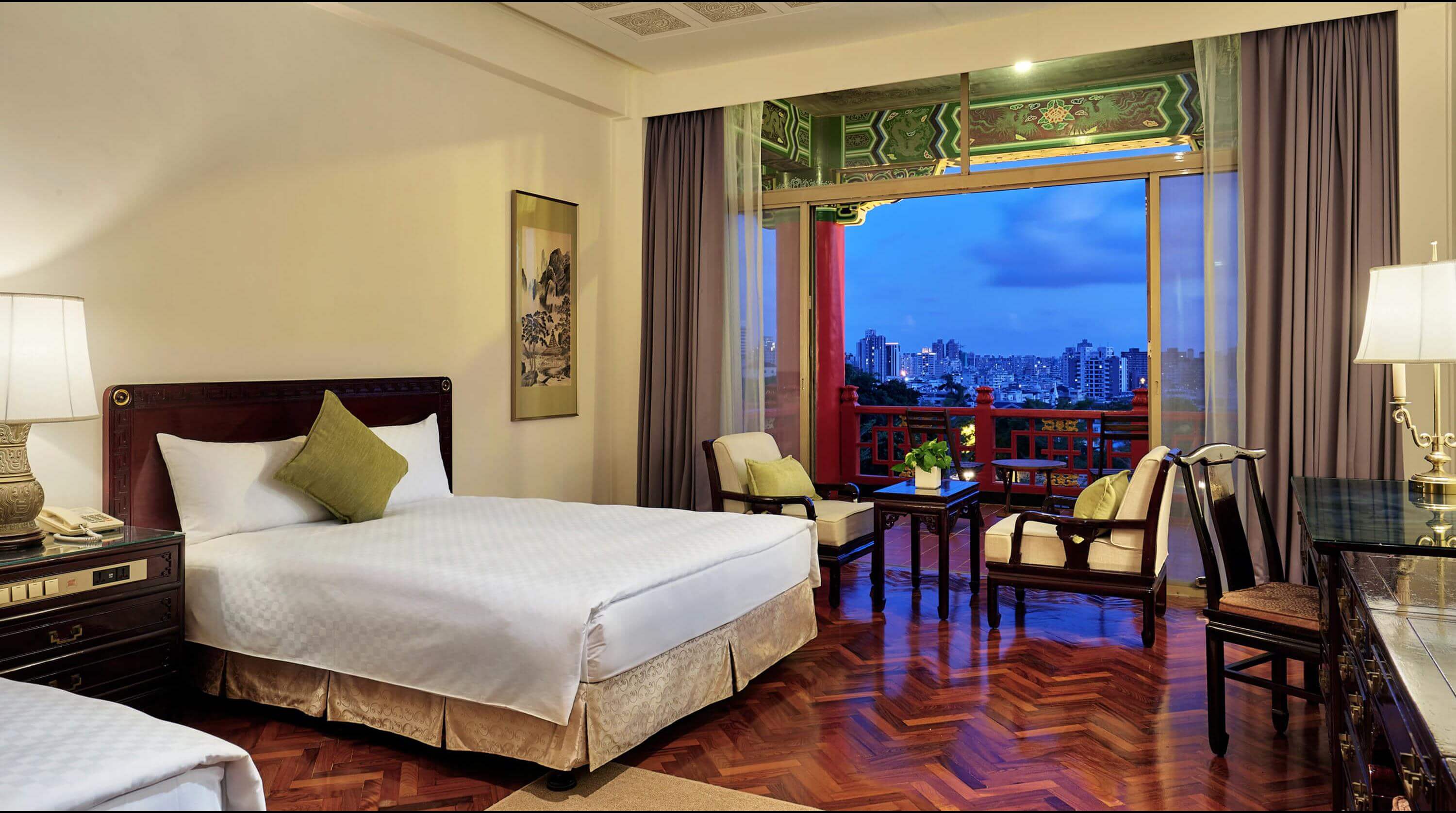 The spacious rooms in classic setting allow full relaxation of the guests. The balcony of the room provides a commanding view of glittering Kaohsiung at nighttime.