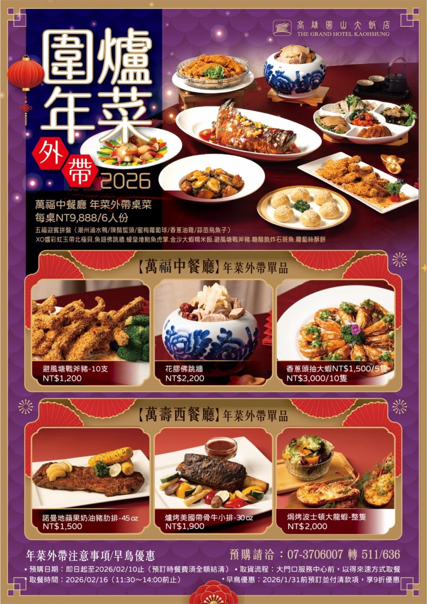 - 預訂日期:即日起至2026年02月10日止 (預訂時,餐費一律全額結清)