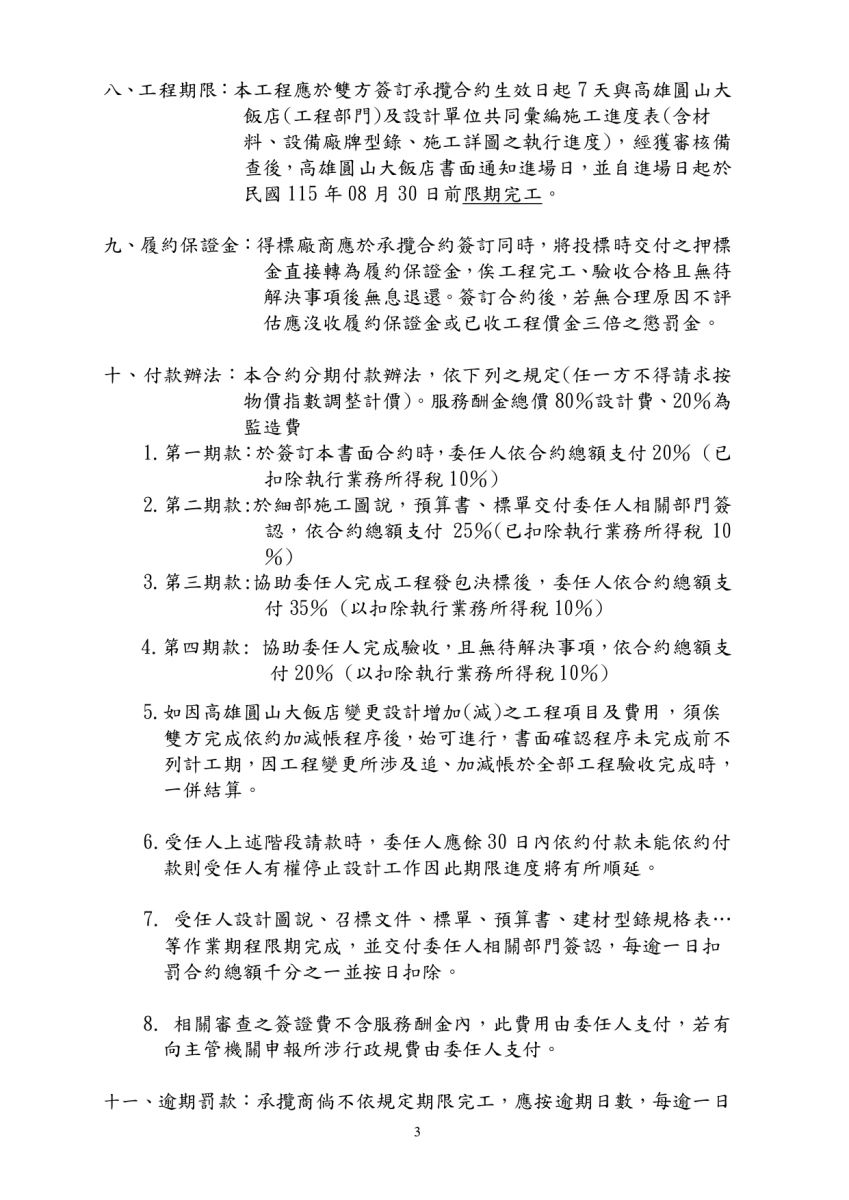 【公告機構/業主】:高雄圓山大飯店。