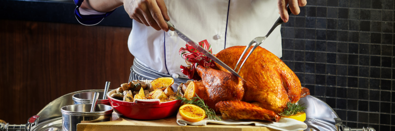 主廚現場火雞現切服務,營造經典節慶氛圍
