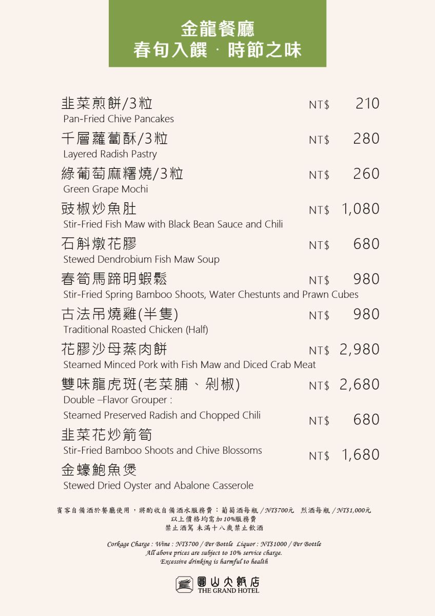 【金龍餐廳、圓苑餐廳】春旬入饌・時節之味