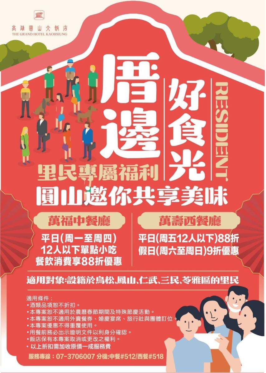 凡設籍於鳥松.鳳山.仁武.三民及苓雅區里民用餐可享優惠