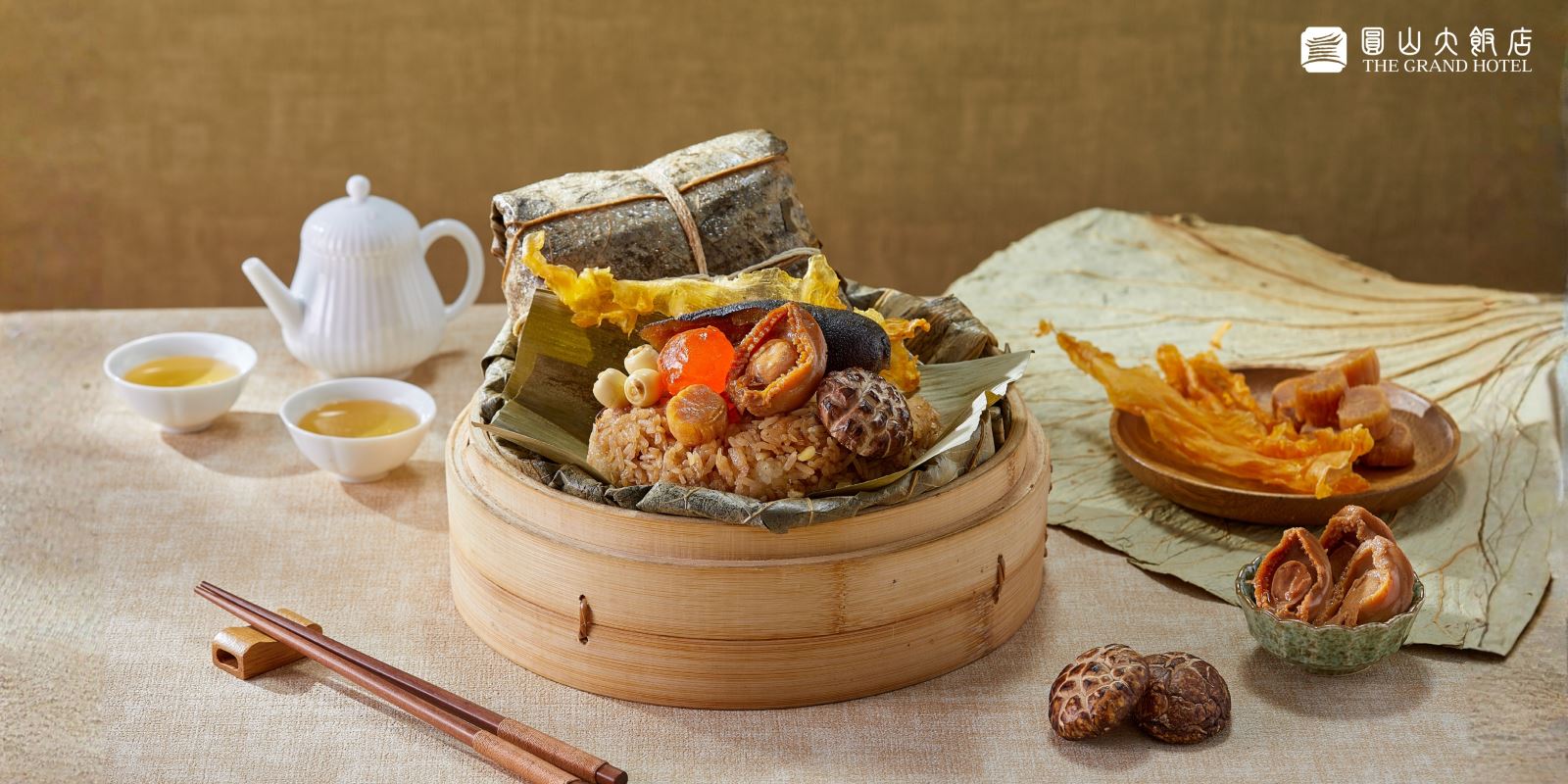 迎接端午佳節,提供民眾贈禮、自用需求的不同選擇,圓山大飯店精心推出《粽情 ● 圓滿》限量端午粽,包括兩款由國宴主廚團隊親自製作,多次媒體評比獲獎「金龍裹蒸粽」與獨家宮廷秘醬「九環醬珍珠粽」,另外還有端午禮粽組「福祿壽百味粽組」其中包含三款為古早風味「福圓紫米粽」、澎湃奢華「財祿鮑皇粽」、上選食材「萬壽羅漢粽」,只要購買任一組加附贈圓山品牌保冷袋。